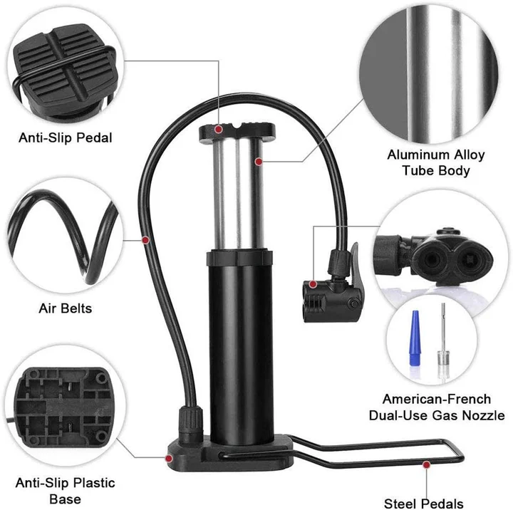Stay prepared with this High Pressure Foot Air Pump, designed for quick and efficient inflation of tires, sports balls, scooters, cars, and inflatable toys. Built with a heavy-duty metal cylinder, it provides strong air pressure and long-lasting performance. The compact mini design makes it portable and easy to store, while the dual nozzle head ensures compatibility with different valves. Whether you’re at home, on the road, or outdoors, this reliable foot pump is a must-have tool for everyday use.